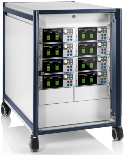 帶有8臺(tái)R&S®NGM202兩通道電源的測(cè)試系統(tǒng),用于模擬48 V電池管理系統(tǒng)中所需要使用的16個(gè)電池單元。